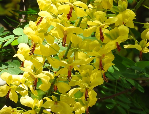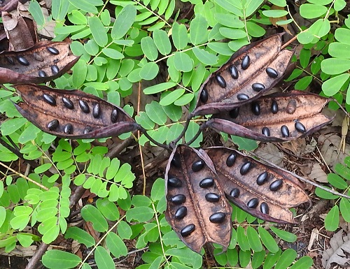 この樹はマメ科で、葉は2回偶数羽状複葉という珍しい葉序の葉を持っています。