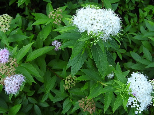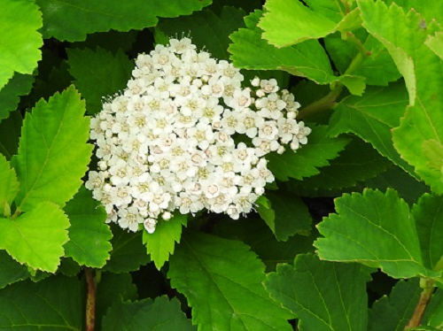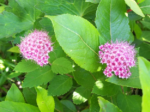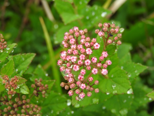 これはマルバシモツケの花で北大植物園にて観察しました。