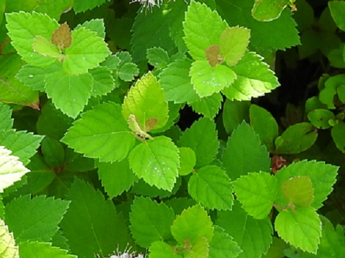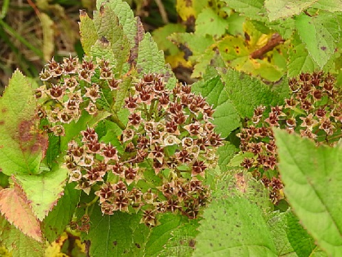 このシモツケの葉は吾妻山で観察したものに比べ葉が細長く、葉の変異が多いことが判ります。