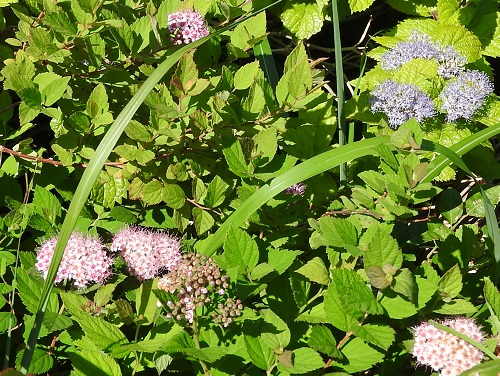 開花時期は5~8月で、枝先の複散房花序に小さな花を多数開きます。花の色は通常ピンク色で、