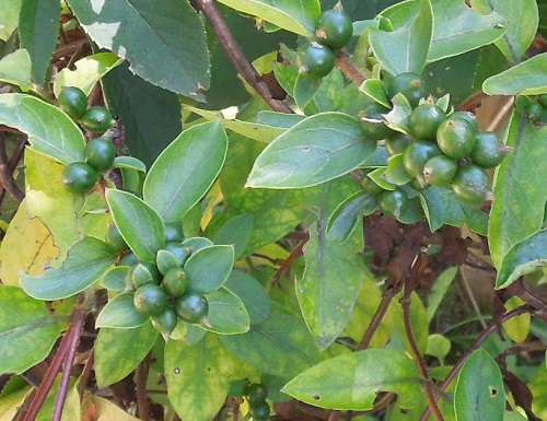 秋に実を付けますが、若い実は緑色で、熟してくると黒色に変化します。どちらも艶があり綺麗な実です。