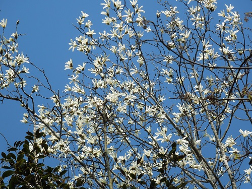 コブシと違って花の下に葉がついていないので区別できます。