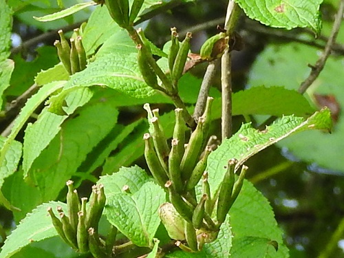 実は長さ約2cmの円柱状の蒴果で、10月頃熟します。