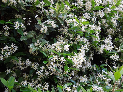 花は白い5枚の花弁が風車のように捻じれて付いています。