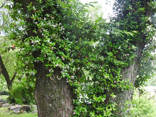 大きな樹に絡み付いて樹の上部まで這い登っています。