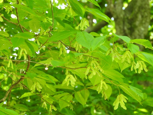 果実は8~10月に熟し、長さ2.5~3cmの翼果で、ほぼ直角に開きます。