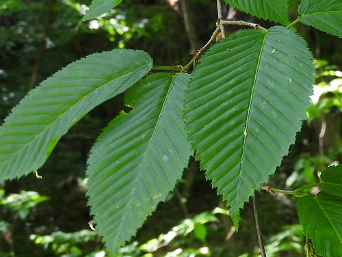 葉身長7~15cmで、平行する18~25対の側脈があります。葉の縁には形の揃った重鋸歯があります。