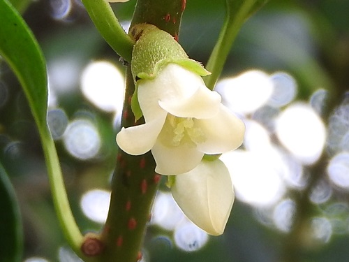 雌雄別株で、雄花は2-3個集まってつき、雌花は単生します。花弁は4裂して裂片は反り返ります。