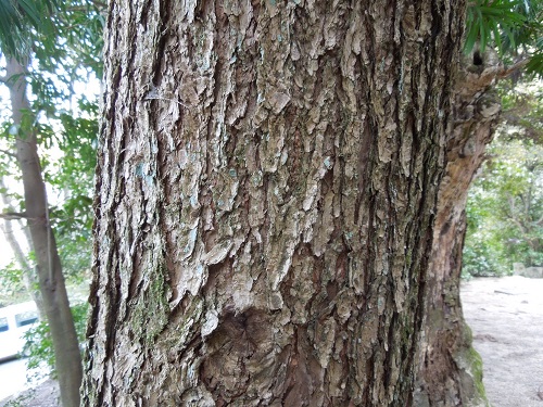 樹皮は赤褐色または灰褐色で、不規則に深く裂けて落ちます。