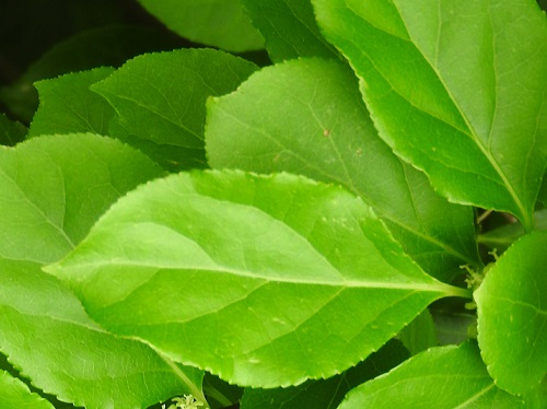 鋸歯の先端はよく見ますと内側に曲がっています。葉は互生します。