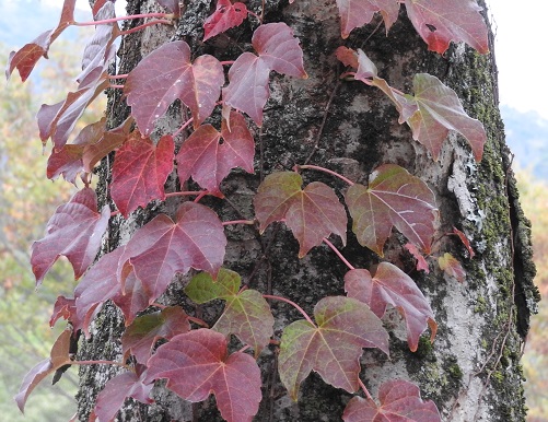 秋には葉が真っ赤に色づき見事ですが、やはりツタウルシも同様に真っ赤に紅葉します。