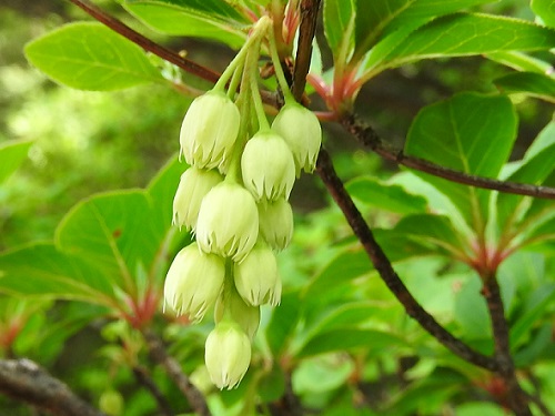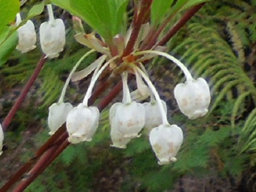 ②サラサドウダン:花の色は白~淡い紅色で先に行くほど紅色が濃くなり、紅色の筋が入っている