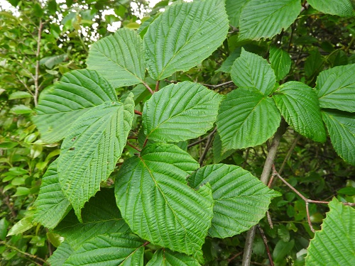 ④ムシカリ:葉形はほぼ円形で、大きさはガマズミの仲間では最も大きい。鋸歯はやや鈍く