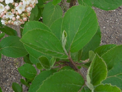 葉形は普通丸くて大きく、葉先は突き出ますがミヤマガマズミほど長くありません。